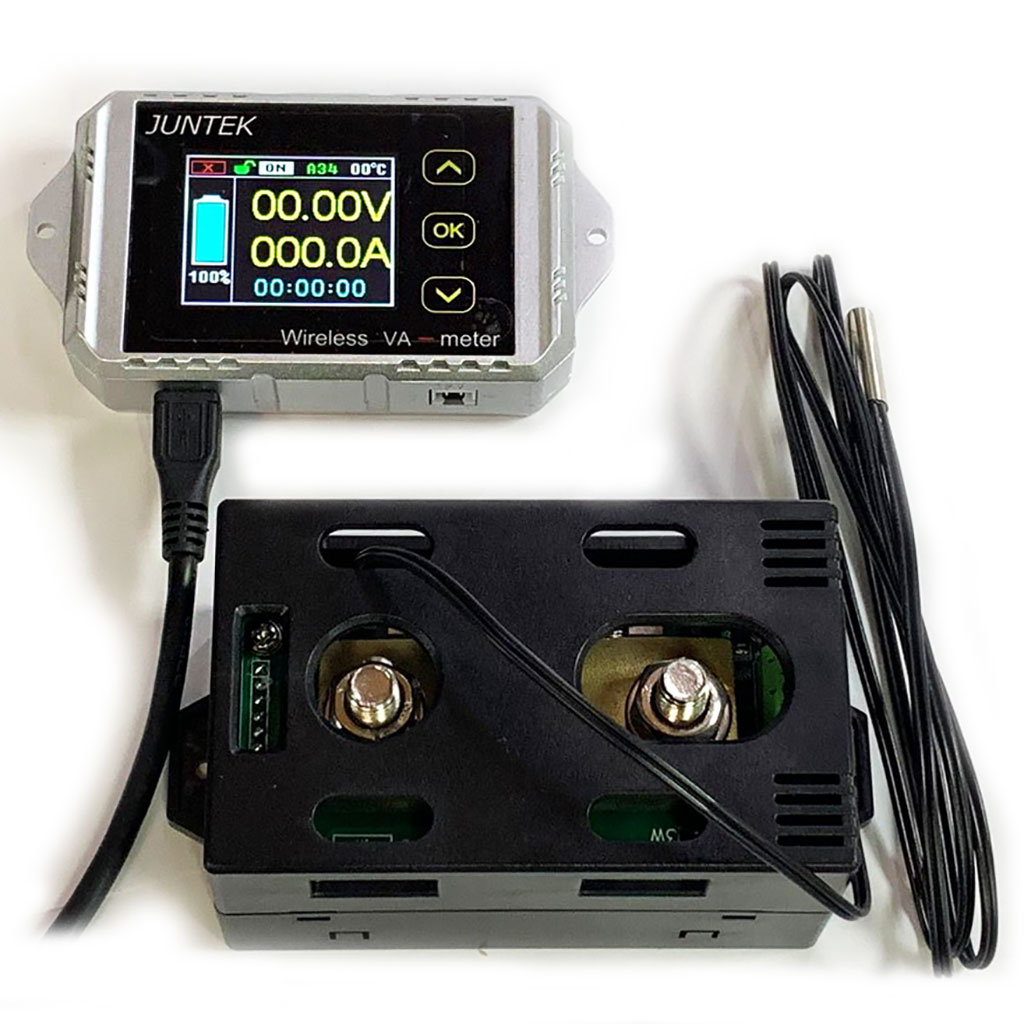 Многофункциональный измерительный блок JUNTEK VAT1200 предназначен для измерения напряжения до 100В, силы тока до 200В, мощности, емкости, времени и температуры источника энергии. JUNTEK VAT1200 может применяться как в стационарных, так и в мобильных устройствах (например, контроль энергосистемы солнечных батарей, контроль бортовой системы электросамокатов и электровелосипедов).