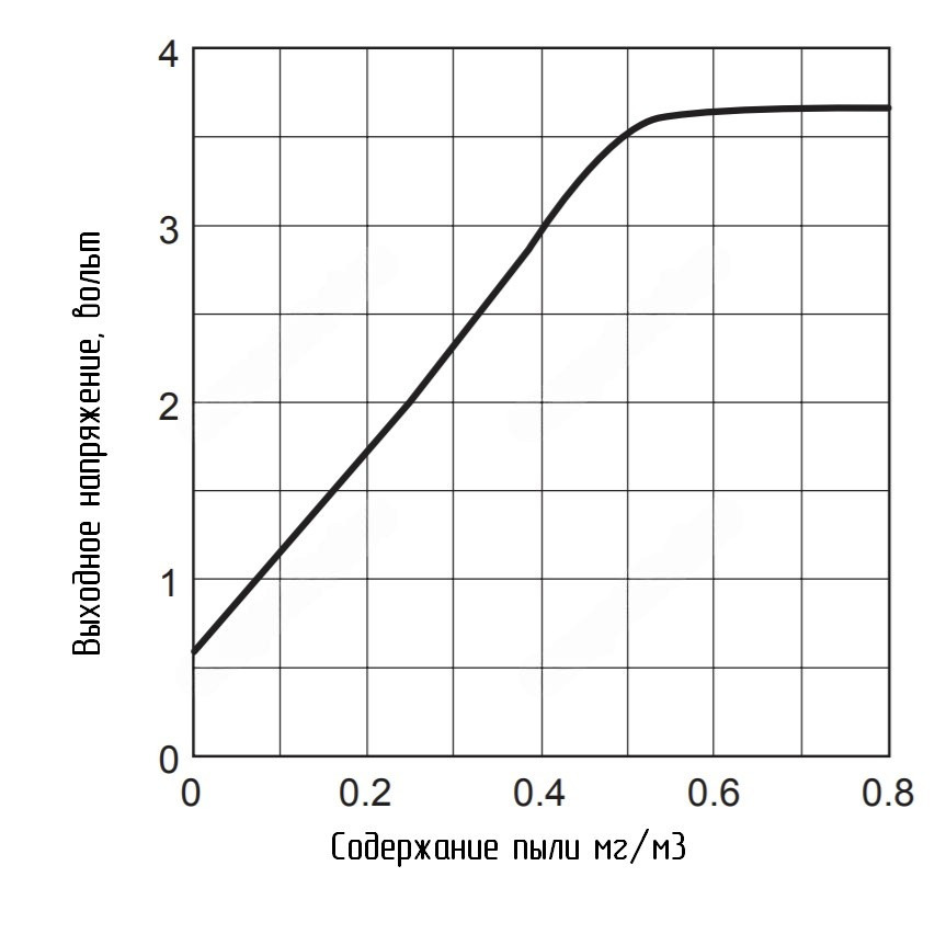 График зависимости выходного напряжения от количества пыли в воздухе.