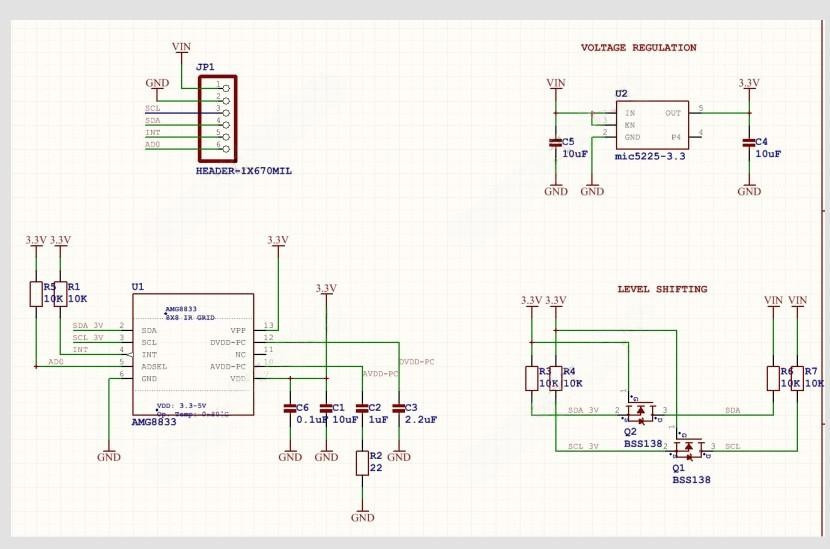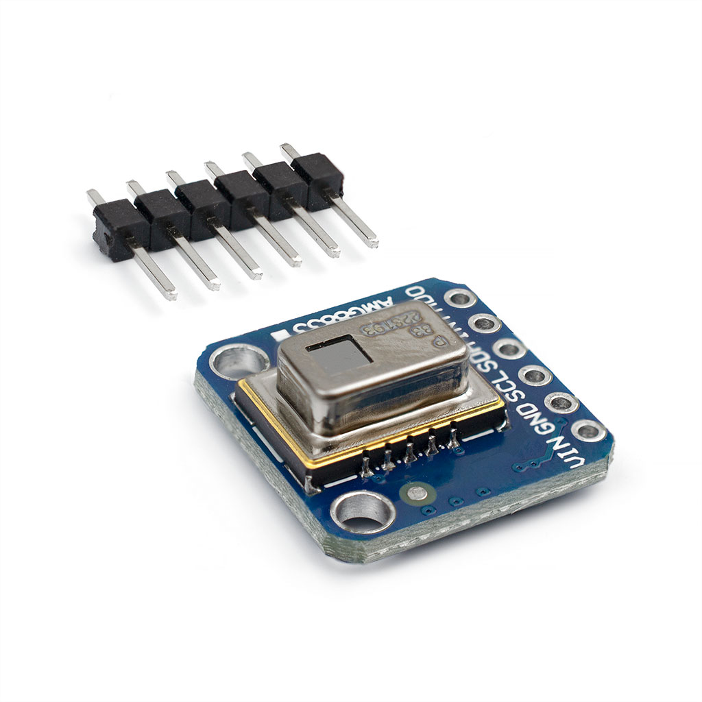 Датчик тепловизора AMG8833 позволяет получить изображение c разрешением 8*8 пикселей в инфракрасном диапазоне теплового спектра (от 0,74 мкм до 1000 мкм), а также определить температуру в каждой точке изображения в диапазоне от 0° до 80°C. Датчик содержит матрицу из 64 (8*8) пикселей, чувствительную к инфракрасному спектру, а также фокусирующую линзу с углом зрения 60° по вертикали и горизонтали. Таким образом датчик AMG8833 не требует дополнительных оптических элементов и полностью готов к работе.