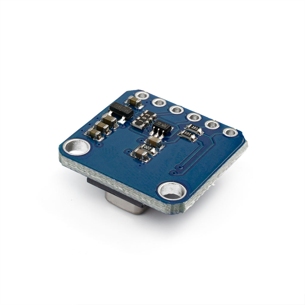 Напряжение питания датчика и логический уровень управляющих сигналов составляет 3,3 вольт. Для работы с напряжением питания 5 вольт на печатной плате предусмотрен линейный LDO преобразователь напряжения. Также на печатной плате размещен преобразователь логического уровня на полевых транзисторах, таким образом возможна работа как с 5, так и с 3,3 вольтовой логикой.