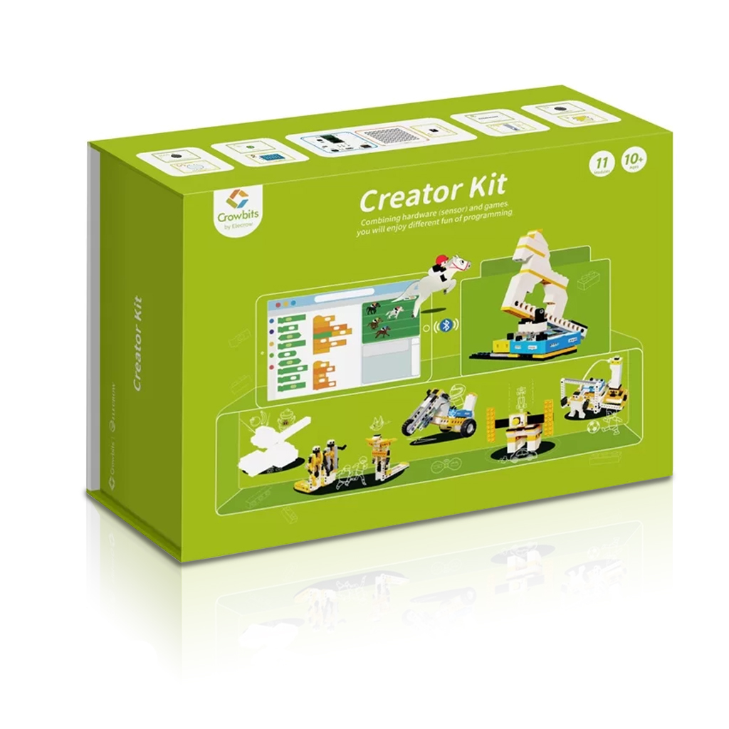 Образовательному циклу "Компьютерная наука" посвящён новый набор "Создатель" в серии конструкторов Crowbits от Elecrow Technology. Юные новаторы знакомятся с техникой программирования начального уровня на примере визуально-блочной среды LetsCode, разработанной для персонального компьютера (ПК). Метод визуального программирования отличается от классического стиля написания своей упрощённой системой построения кода из графических блоков, разделённых на группы по цвету и форме для более лёгкого понимания и запоминания команд. Код программы в LetsCode на языке Arduino выстраивается из блоков путём их перетаскивания по экрану и расставлению в правильном порядке. Впоследствии, готовая программа переносится в память микроконтроллера UNO (Bluetooth), используемого в основе интерактивных роботизированных проектов конструктора "Изобретатель". Возможность многократного повторного перепрограммирования UNO побуждает детей к проведению интересных экспериментов над изменением поведения искусственного интеллекта в различных условиях, а также стимулирует желание разрабатывать собственные игровые приложения.