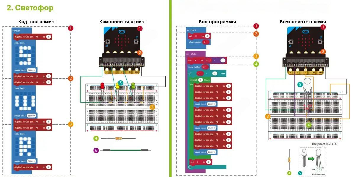 | 6 | Светодиод RGB | 1шт | 18 | Макетная плата 400 | 1шт |