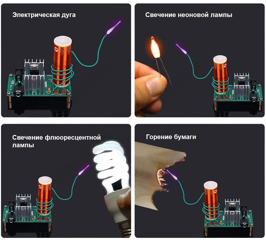 - Малая выходная мощность устройства безопасна для жизни. Вместе с тем, прямое прикосновение к высоковольтным разрядам и другим частям работающей конструкции может причинить боль и вызвать ожоги на коже.;