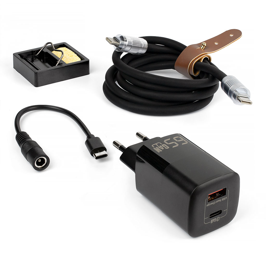 Паяльник FNiRSi HS-01 65 Вт USB-C/PD DC9-24V Black BC2 в комплекте с БП PD 65W и кабелем Type-C