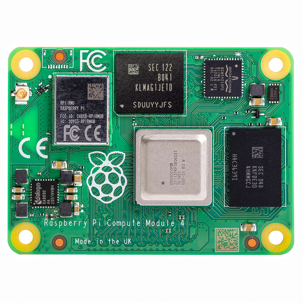 Модуль CM4104032 RPi оснащён 4ГБ оперативной и 16ГБ постоянной памяти для работы приложения, имеет высокопроизводительный 8-ядерный 64-битный ARMv8 процессор BCM2711, разгоняющийся до 1.5ГГц, и множество проводных/беспроводных интерфейсов обмена информацией. Набор встроенных технологий WiFi, Bluetooth и Gigabit Ethernet, в сочетании с многокальными портами GPIO, поддерживающими мультиплексирование протоколов UART, I2C, SPI, PCM, PWM и SDIO, дополнительно разбавлен цифровыми каналами передачи видеопотоков с внешней CSI-камеры и вывода на внешний DSI-экран. Заметно повзрослевшее четвёртое поколение RPi Compute Module располагает двухканальным выходом HDMI v2.0 с поддержкой разрешения вплоть до 4Kp60. Ради разделения быстрых и медленных интерфейсов ввода/вывода, вместо используемого в CM3/3+ формата бокового 200-контатного разъёма коммутации SO-DIMM применяются две планки специализированных 100-контактных разъёмов DF40C-100DS-0.4V. Единственный канал шины PCIe 2.0 доступен для прочих расширений, совместимых с контроллером VLI VL805 (например, для добавления в CM4 интерфейса с портом USB3.0).