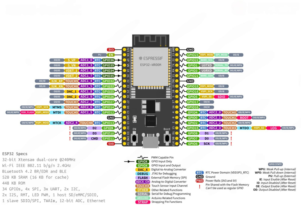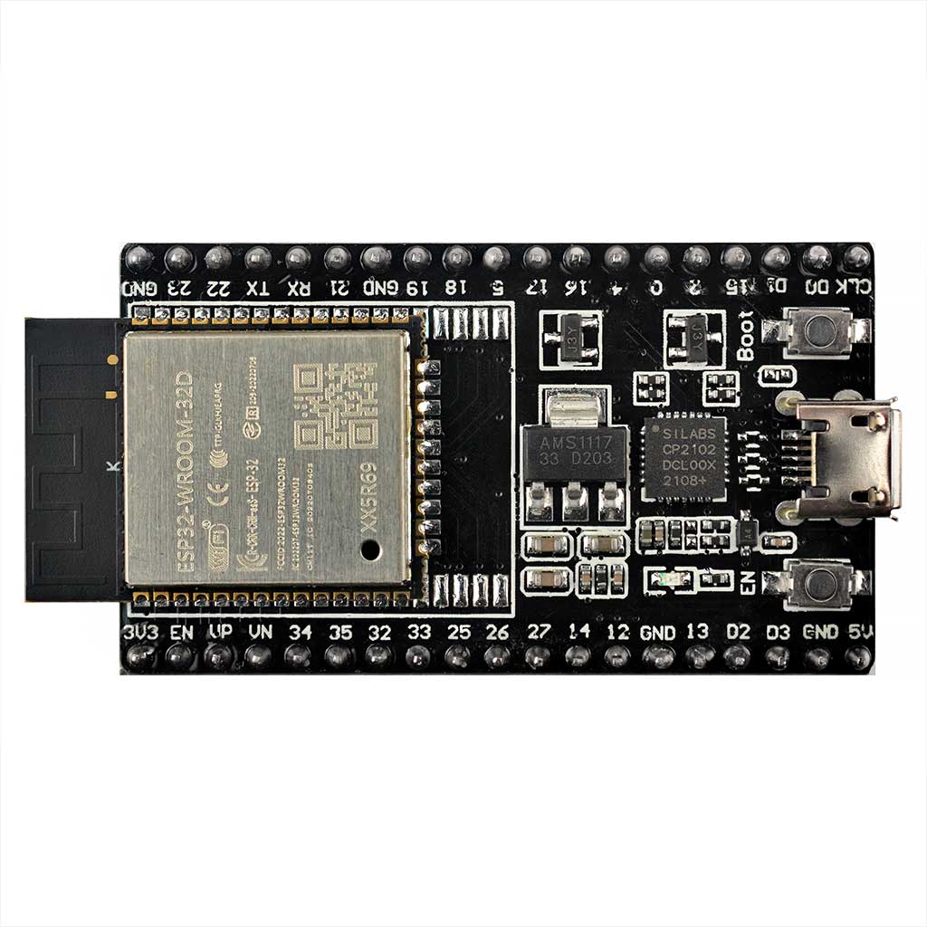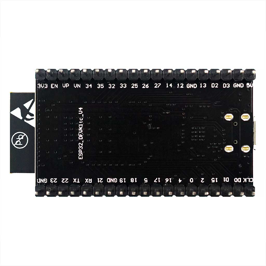 Плата разработчика ESP32-DevKitC V4 на базе ESP32-WROOM-32D — высокопроизводительном совмещённым Wi-Fi + BT + BLE модуле от компании Espressif, разработанным для широкого спектра применений, начиная от маломощных сетевых датчиков до самых сложных приложений, например, таких как кодирование голоса, потоковая передача музыки и MP3 кодирование. ESP-WROOM-32D оснащён PCB-антенной.