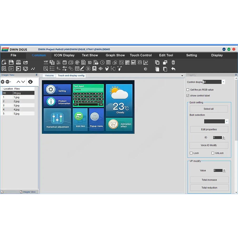 Спроектированные специально для задач создания HMI-интерфейса с совершенно любым тематическим наполнением, устройства DWIN предлагают альтернативный вариант быстрой и лёгкой разработки пользовательского графического интерфейса (GUI) взамен классического подхода, c затратным по времени написанием, оптимизацией и отладкой равнозначной части кода приложения, которому потребуется некоторый объём свободных аппаратных ресурсов. Весь модельный ряд HMI-устройств DWIN выпускается в широком спектре технических характеристик, работает на фирменной ОС с ядром DGUS, поддерживает бесплатную программную среду DGUS для разработки дизайн-прошивки GUI. На выбор присутствуют несколько видов графических матриц TN/EWTN/IPS круглой, квадратной или прямоугольной формы с диагональю 1.3 - 21.5 дюйма и графическим разрешением от 240х240 до 1920х1080(FullHD) точек с цветовой палитрой 65 тыс., 262 тыс. или 16.7 млн. оттенков. Программируемые экранные панели DWIN отличаются друг от друга установленным резистивным или ёмкостным тачскрином (в том числе есть модели без него), наличием коммуникационных интерфейсов UART-TTL, GPIO(SPI/ADC/PWM), RS232, RS485, CAN и др, встроенной звукопроигрывающей системой, размерами внутренней памяти, допустимыми условиями эксплуатации и иными параметрами. В дисплейных модулях DWIN реализован, пожалуй, самый простой способ обновления пользовательского ПО без необходимости демонтажа HMI-устройства, предусматривающий загрузку с самой обычной флеш-карты, хранящей в себе предварительно подготовленные файлы нового приложения. Традиционный метод прошивки ПО DWIN организован через последовательную шину пользовательского интерфейса с проводным подключением к порту ПК.
