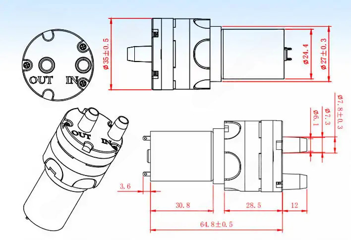 Насос воздушно-водяной мембраный, 12В, 1,5 л/м, штуцеры 7,6мм