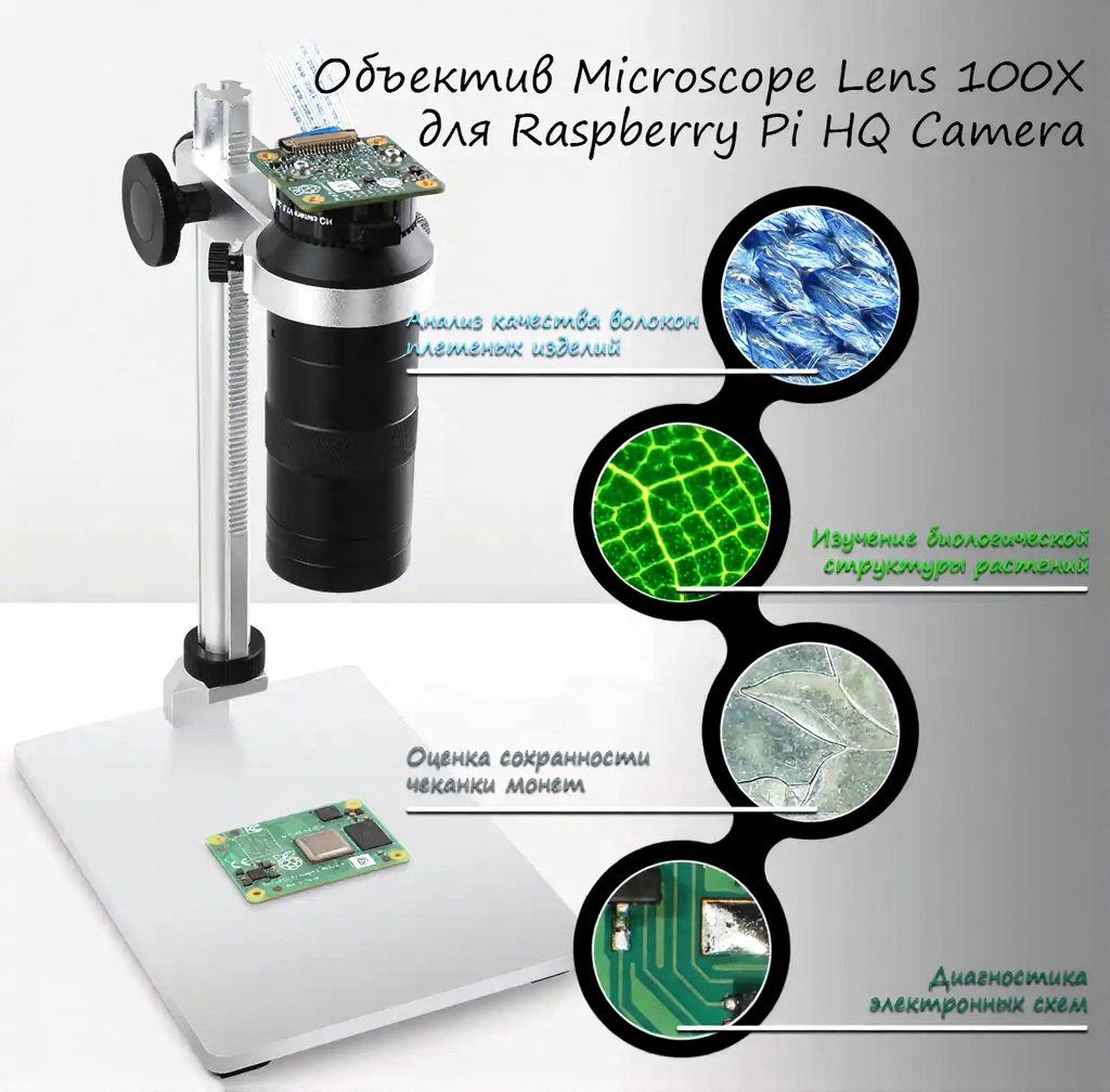 Объектив Microscope Lens 100X для Raspberry Pi HQ Camera