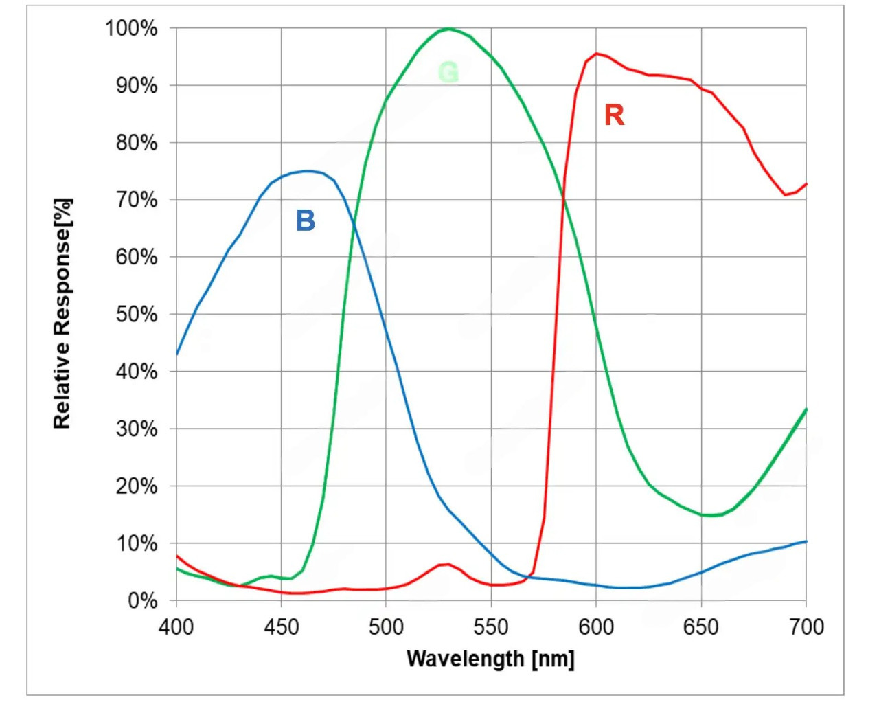График спектрально-чувcтвительных характеристик сенсора Sony IMX708
