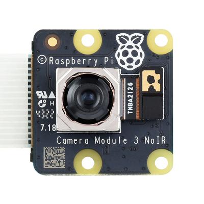 Официальная камера Raspberry Pi Camera Module 3 NoIR на фотоматрице Sony IMX708 с разрешением 11.9 МПикс. Съёмка: фото до 4608х2592, видео до 1080p50квс. Апертура: F1.8. Фокусное расстояние: 4.74мм, фиксированное. Угол обзора по диагонали 75°. Интерфейс C