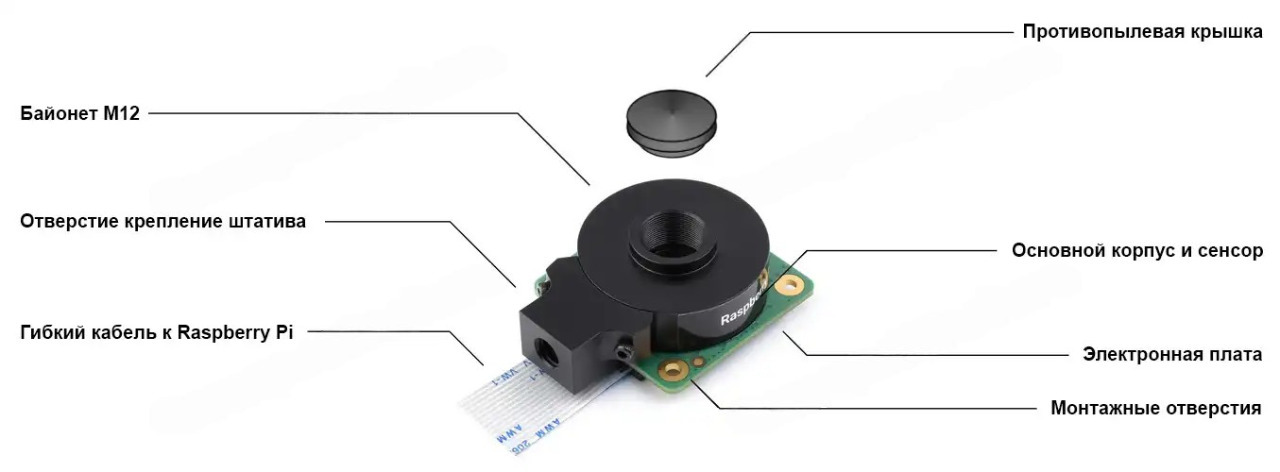 Компоненты модуля камеры Raspberry Pi High Quality Camera M12