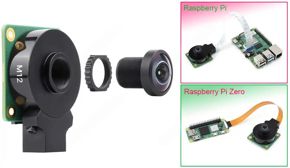 Объектив WS1842714 184.6° 14МПикс Fisheye для Raspberry Pi HQ Camera M12