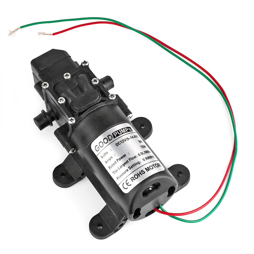 Помпа водяная DC GoodPumps 12V; Входное напряжение: 12В (9-14.4V), рабочий ток: 6A, мощность: 72Вт, нагнетаемое давление 0.9MPA
