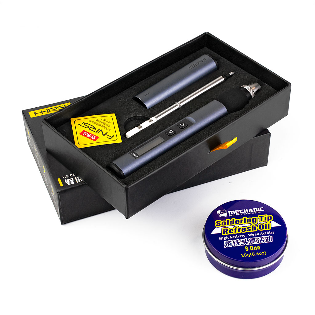 Подарочный набор: Паяльник FNiRSi HS-01 Blue + PD 65W GaN + 6 жал + очиститель жал S One