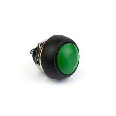 Кнопка пластиковая в отвертие 12мм (зеленая) герметичная с металлической гайкой