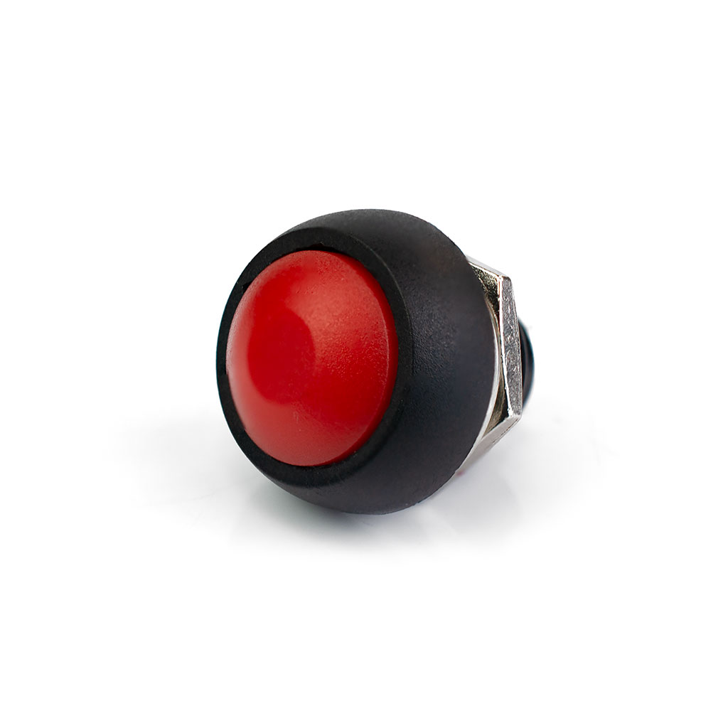 Кнопка пластиковая в отвертие 12мм (красная) герметичная с металлической гайкой