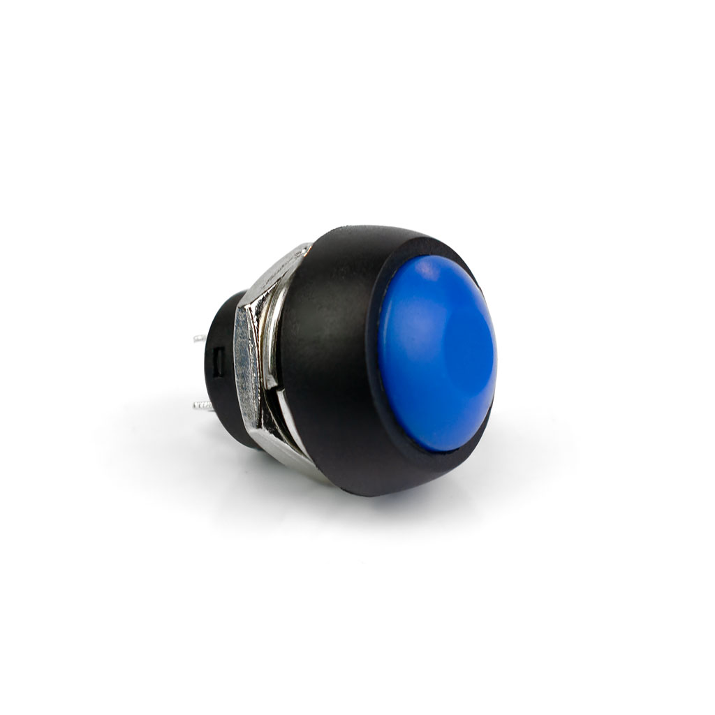Кнопка пластиковая в отвертие 12мм (синяя) герметичная с металлической гайкой