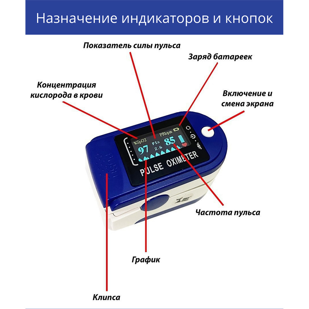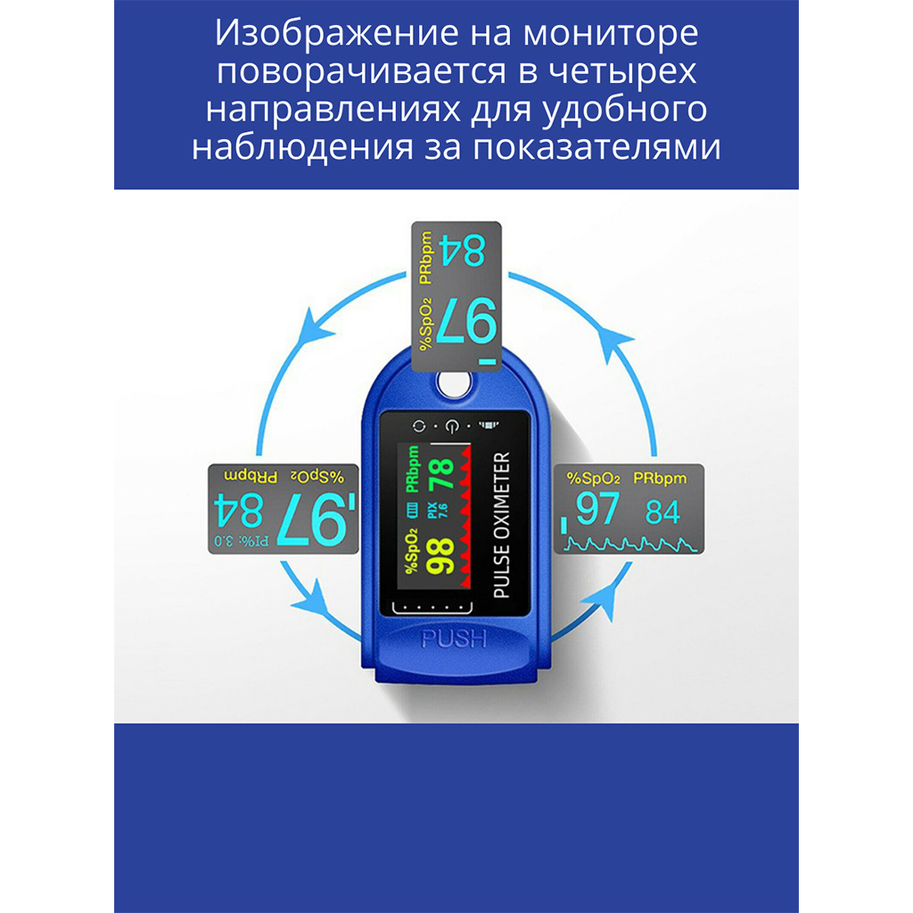 Пульсоксиметр портативный Leelvis MD300C3 на палец, русская инструкция, быстрое измерение, высокая точность, яркий ЛЕД дисплей, автоотключение питания, синий