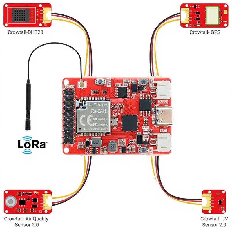 Плата разработчика RA-08H RP2040 LoRaWan 868/915МГц Crowtail Elecrowю Размеры: 40,5*20*7мм