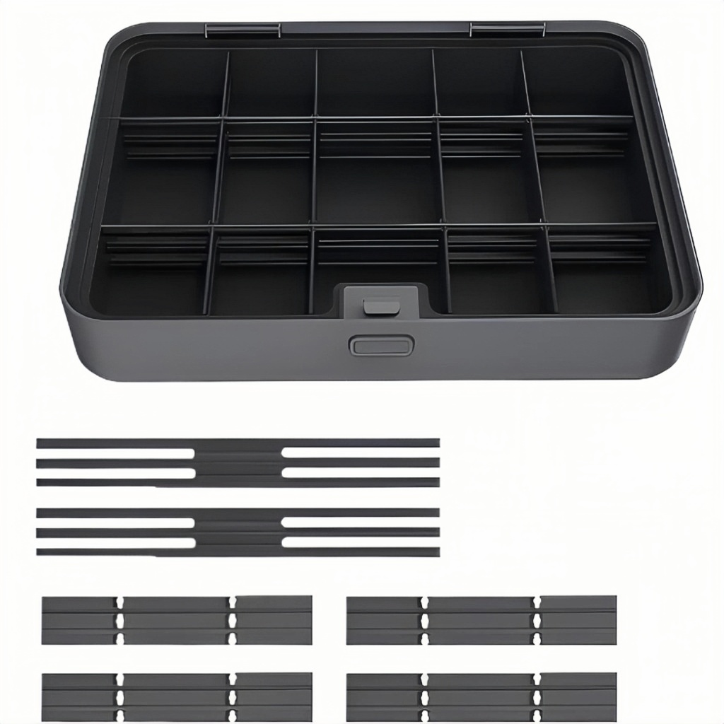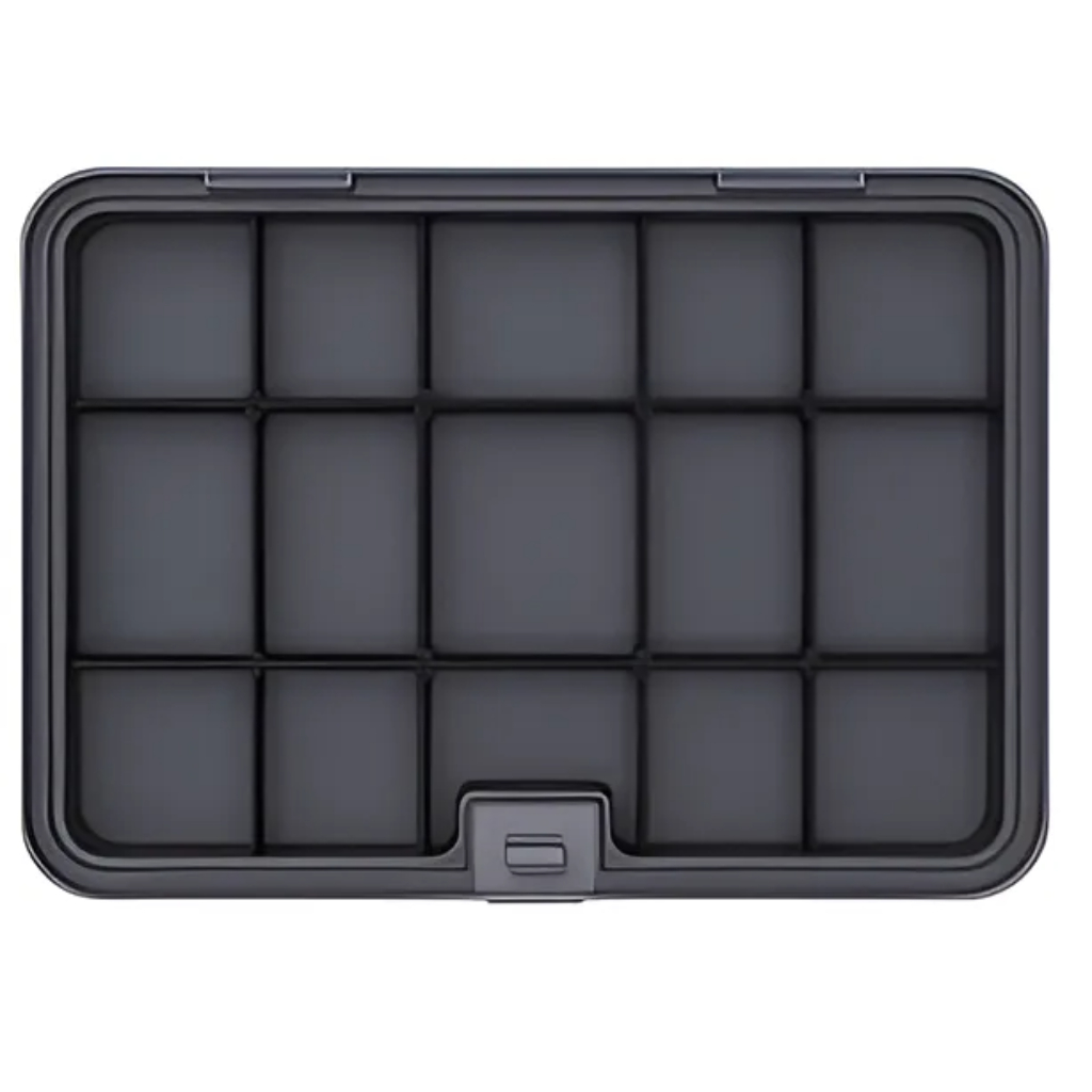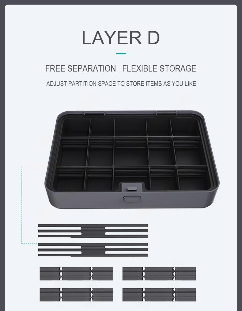Кейс для хранения с разделителями JIMIBOX Layer D - включает в себя 6 перегородок обладающих высокой гибкостью и свободным разделением, каждую перегородку можно отрегулировать под подходящее пространство по своему личному усмотрению, при возможности фиксации двух разделителей. Данный набор представлен в уникальном дизайне соответствующем современной эстетике, изготовленным из прочного и износостойкого ABS пластика, что говорит о его долговечности и устойчивости к механическим повреждениям. Кроме того, набор наделён прочной и удобной ручкой, которая может выдержать вес до 15 килограмм и боковыми защёлками обеспечивающие надёжную фиксацию кейса в закрытом положении, а благодаря своему компактному размеру 303 мм х 217 мм х 61 мм и лёгкому весу 900 г, он идеально подходит для инструментов и оборудования, а также может использоваться в домашних условиях для хранения принадлежностей.