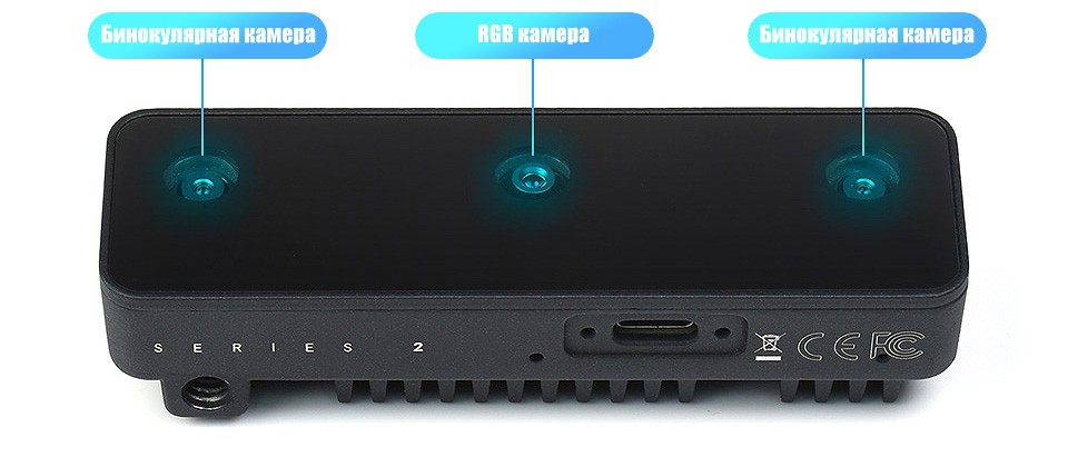 Новая OAK-D-S2 отличается повышенными показателями измерения глубины и отсутствием в структуре 5-вольтового порта. Интегрированная оптика сочетает цветную RGB-камеру IMX378 12МП с автоматическим фокусом и монохромную бинокулярную камеру OV9282 1МП, включен также инерциальный измерительный блок (IMU) BNO086. Встроенный высокопроизводительный процессор машинного зрения Myriad X обеспечивает OAK-D-S2 производительность компьютерных вычислений на уровне 4TOPS, многократно опережая мощности иных рыночно-конкурентных решений: до х10 OpenVM или до х40 Raspberry Pi 4. Экосистема OAK-D поддерживает множество платформ разработки и языков программирования: Windows10, MAC OS, Ubuntu, Raspberry Pi, C/C++, Python, ROS, OpenVINO, Caffe, TensorFlow, MXNety и др. Среда разработки ПО для OAK устанавливается одним щелчком мыши. Для неё существует большое количество примеров и бесплатных моделей промышленных обученных нейронных сетей, благодаря которым пользователи могут быстро создавать собственные продукты.