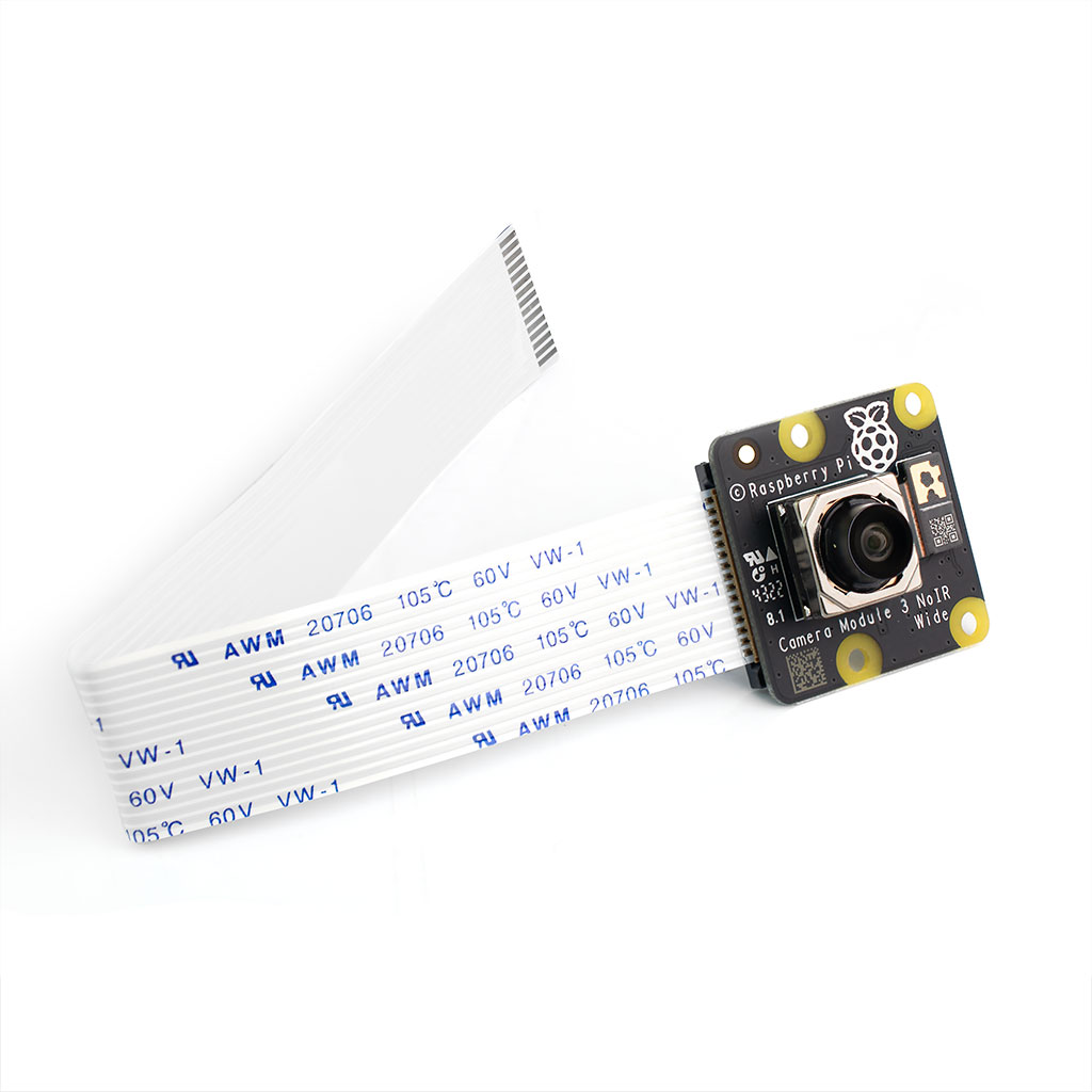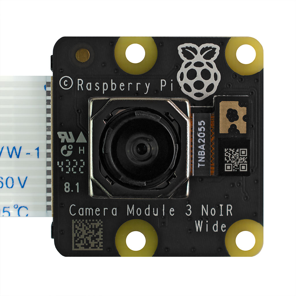 Официальная камера Raspberry Pi Camera Module 3 NoIR Wide на фотоматрице Sony IMX708 с разрешением 11.9 МПикс. Съёмка: фото до 4608х2592, видео до 1080p50квс. Диафрагма: F/2.2. Фокусное расстояние: 2.75мм, фиксированное. Угол обзора по диагонали 120°. Ин