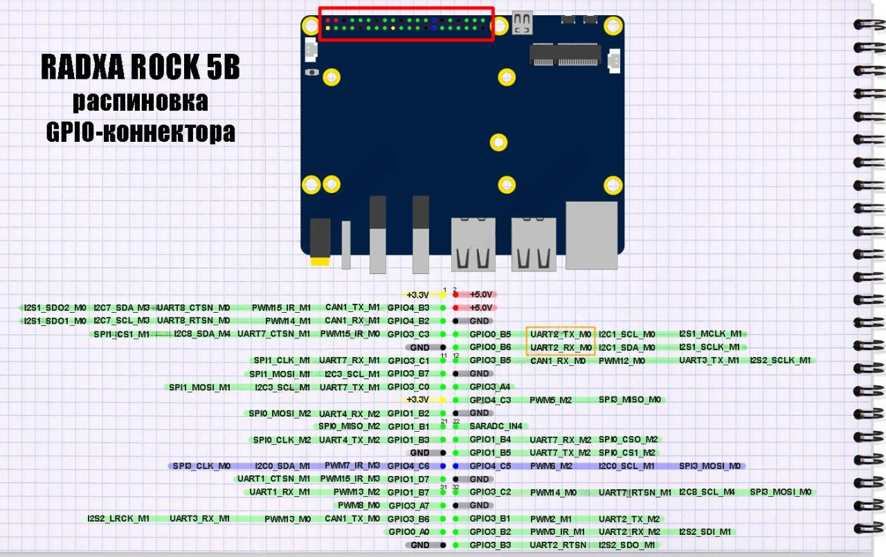 Функциональное назначение GPIO 40pin Radxa ROCK 5B
