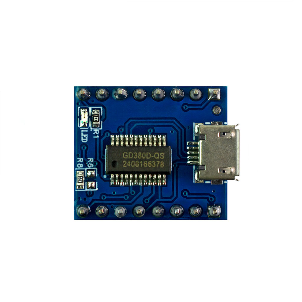 Компактный модуль воспроизведения файлов форматов MP3 и WAV на чипе GD380D-QS со встроенной микросхемой флеш-памяти предназначен для разработки самых разнообразных приложений с опцией звукового оповещения. Полностью совместим с ОС Windows 10/11 и не требует установки драйвера для воспроизведения USB-аудио на ПК, способен заменить звуковую карту. Плата MP3/WAV-плеера GD380D-QS оснащёна 24-разрядным ЦАПом и чипом монофонического усилителя выходной мощностью 2Вт с возможностью прямого вывода аудипотока на наружный динамик (рекомендуется нагрузка 8 Ом, 1.5 Вт). Базовый функционал управления модулем звукового проигрывателя обеспечивает воспроизведение первых 5-ти файлов и реализован через подключение 1-5 электромеханических кнопок или иного варианта внешнего импульсного триггера/генератора. Подключение аналоговой клавиатуры из 8-ми клавиш, собранной по специальной схеме, предусматривает расширенное управление с доступом к функциям регулировки громкости, переходу к предыдущему/следующему файлу и др. А также на плате разведены выводы шины последовательного интерфейса UART-TTL для управления GD380D-QS с использованием команд проприетарного протокола.