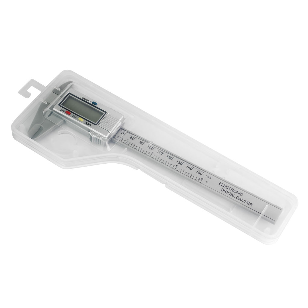Штангенциркуль цифровой пластиковый серый с серым бегукнком 0-150мм в боксе