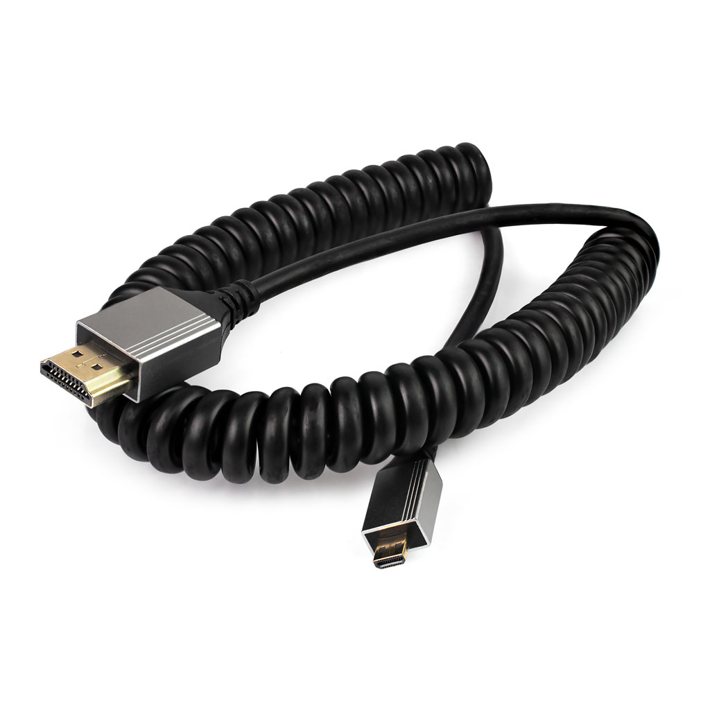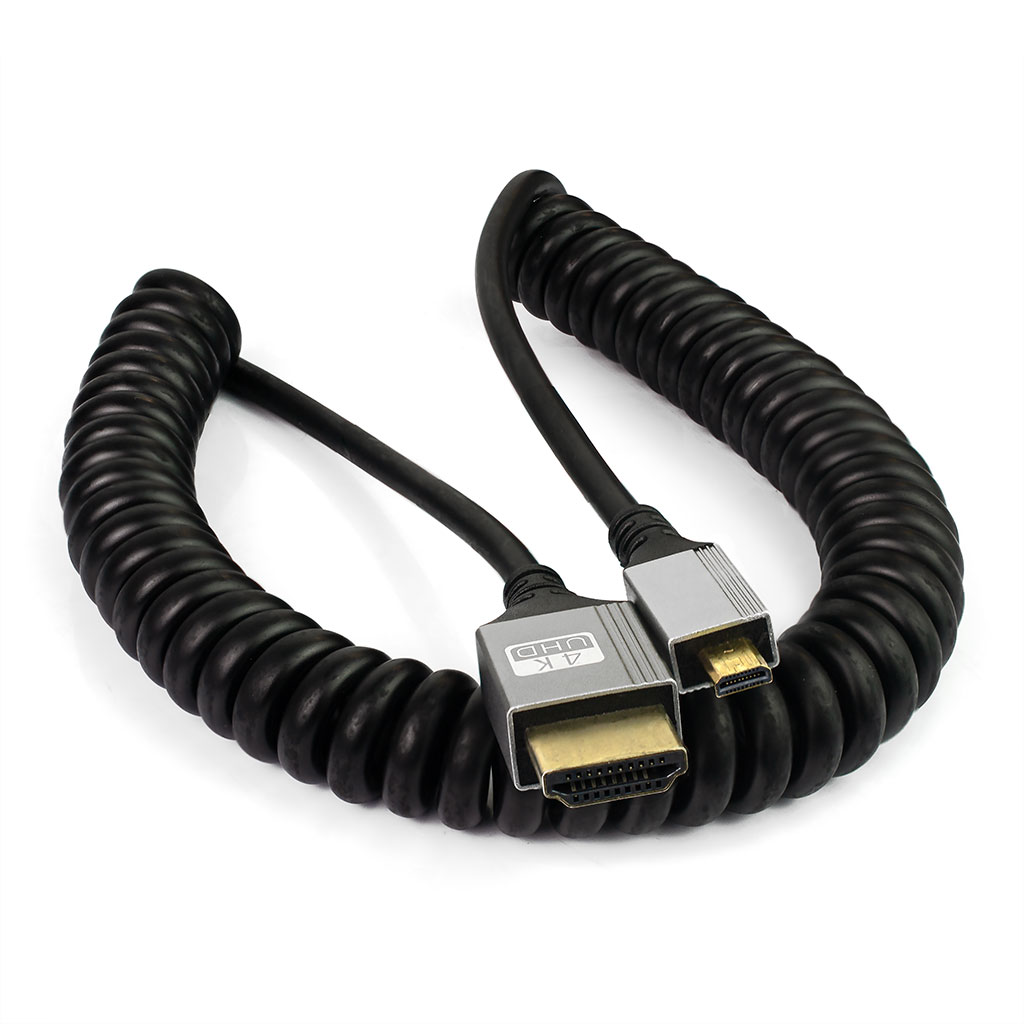 HDMI на Micro HDMI ПРУЖИНКА с поддержкой 4k , MicroHDMI разъем прямой. Длина мин.: 0.5м, макс.: 2.4м.