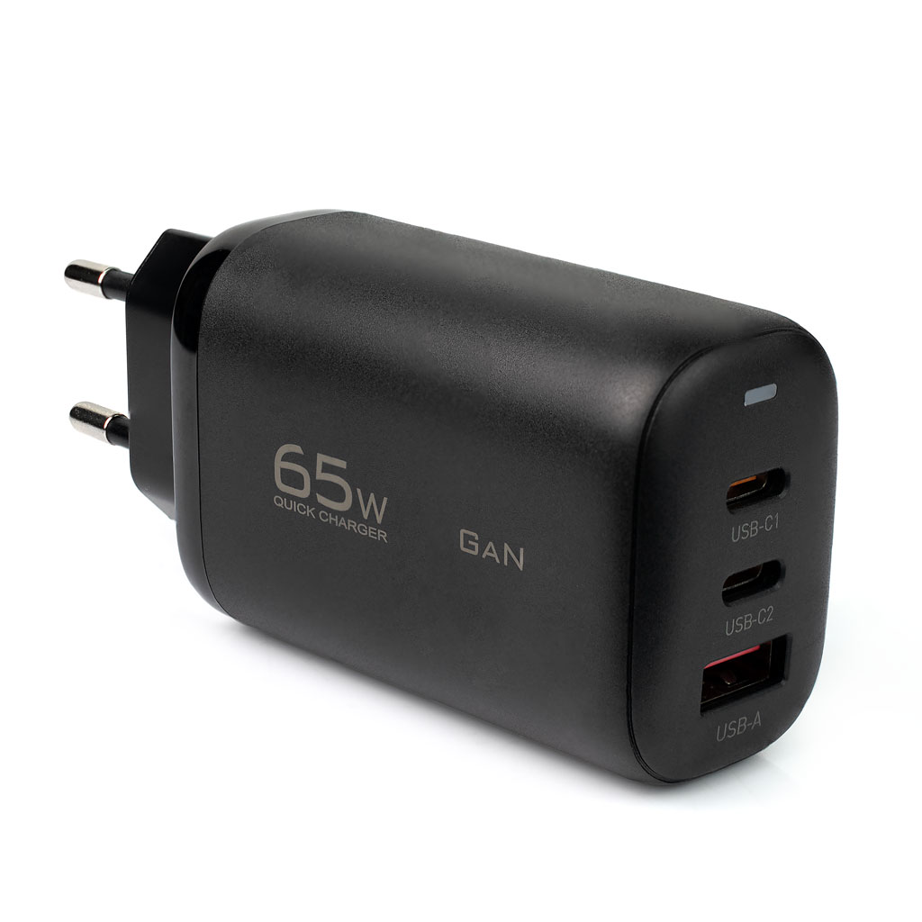 Блок питания 65W GaN (220V->1*USB(A)+2*Type-C, PD, черный)