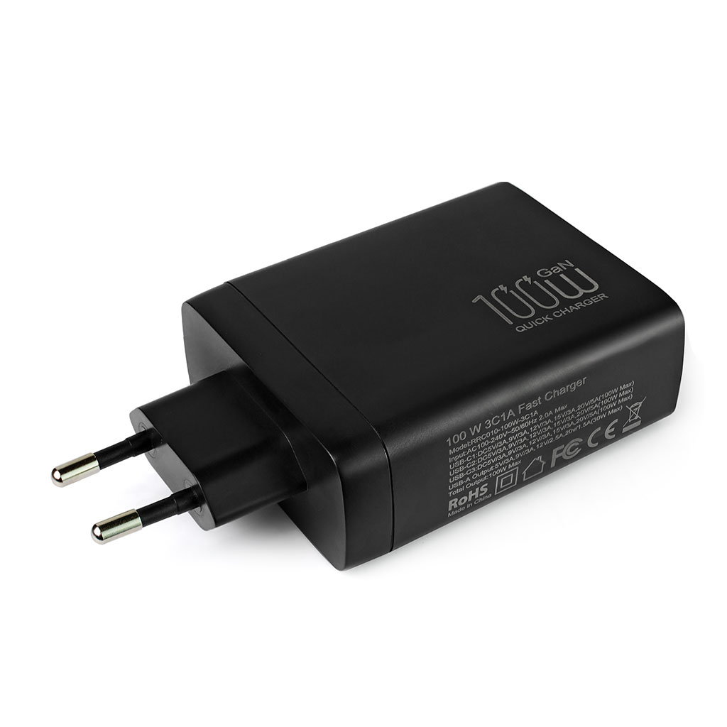 Блок питания 100W GaN (220V->1*USB(A)+3*Type-C, PD, черный)