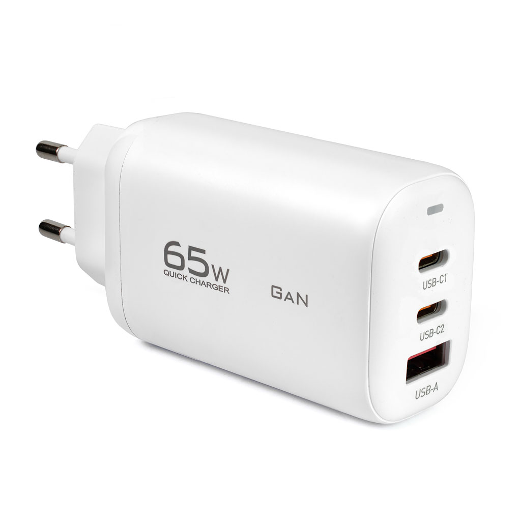 Блок питания 65W GaN (220V->1*USB(A)+2*Type-C, PD, белый)