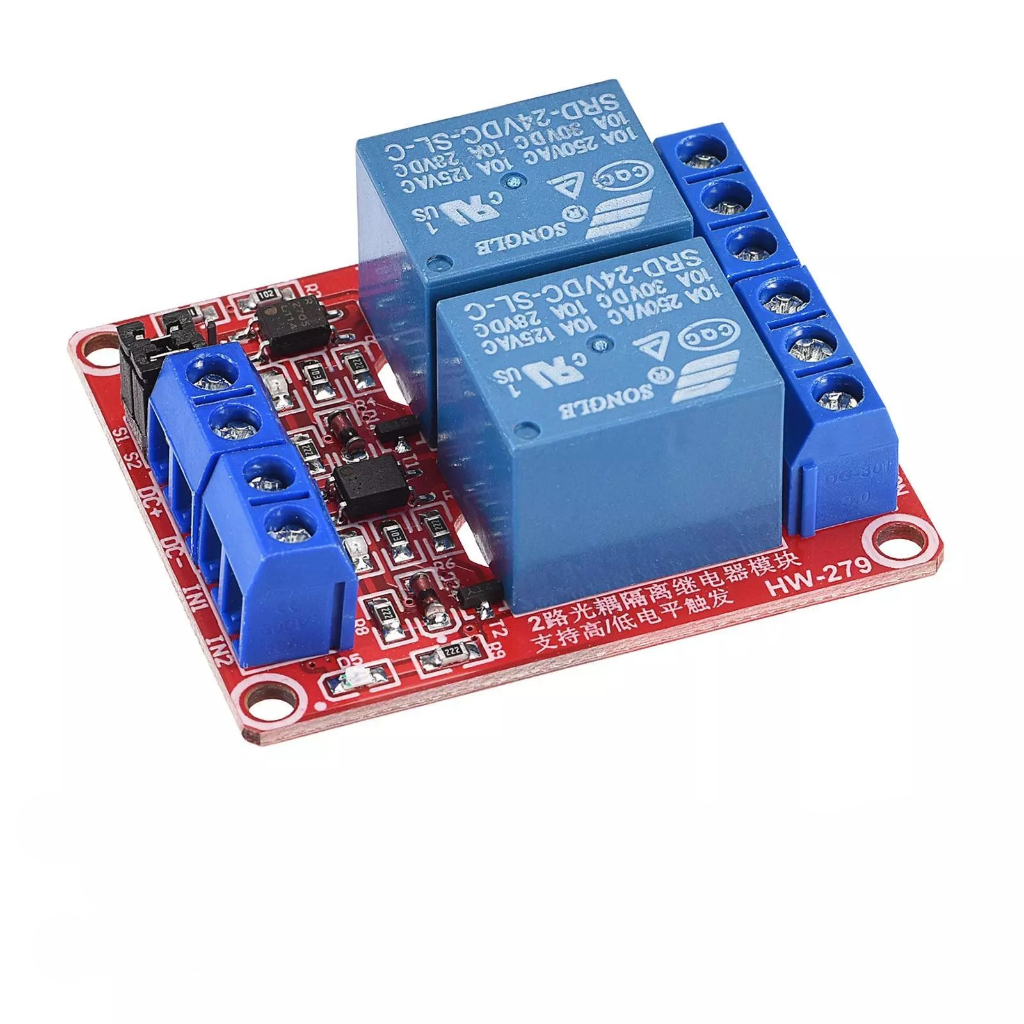 Вы можете купить Модуль реле на 2 канала с опторазвязкой. Обеспечивает более защищенное управление нагрузкой. Переключатель уровня TTL на каждый канал. Питание 24 В. как за наличный расчёт, так и по безналичному расчёту ( т.н. безналу, перечислению).