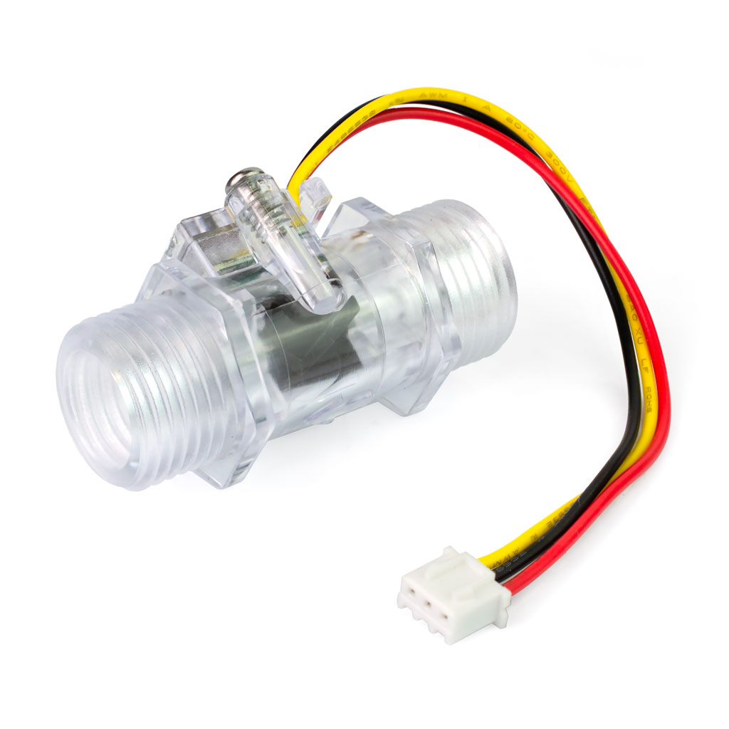 Импульсный датчик потока воды YF-S201С — это электромеханический узел измерения объёма расходуемой жидкости, способный работать с локальными или удалёнными устройствами автоматического мониторинга и распределения. Будучи встроенным в водопроводную магистраль, он обеспечивает генерацию электрических импульсов с частотой, пропорциональной скорости протекания жидкости через конструкцию измерительного механизма. Учёт расхода воды для датчика YS-S201C выполняется при помощи специализированного контроллера по простой математической формуле: Q = F / 300, где Q - результат измерения в литрах за 1 минуту, F - число выдаваемых датчиком импульсов за 1 минуту и 300 - фиксированный коэффициент.