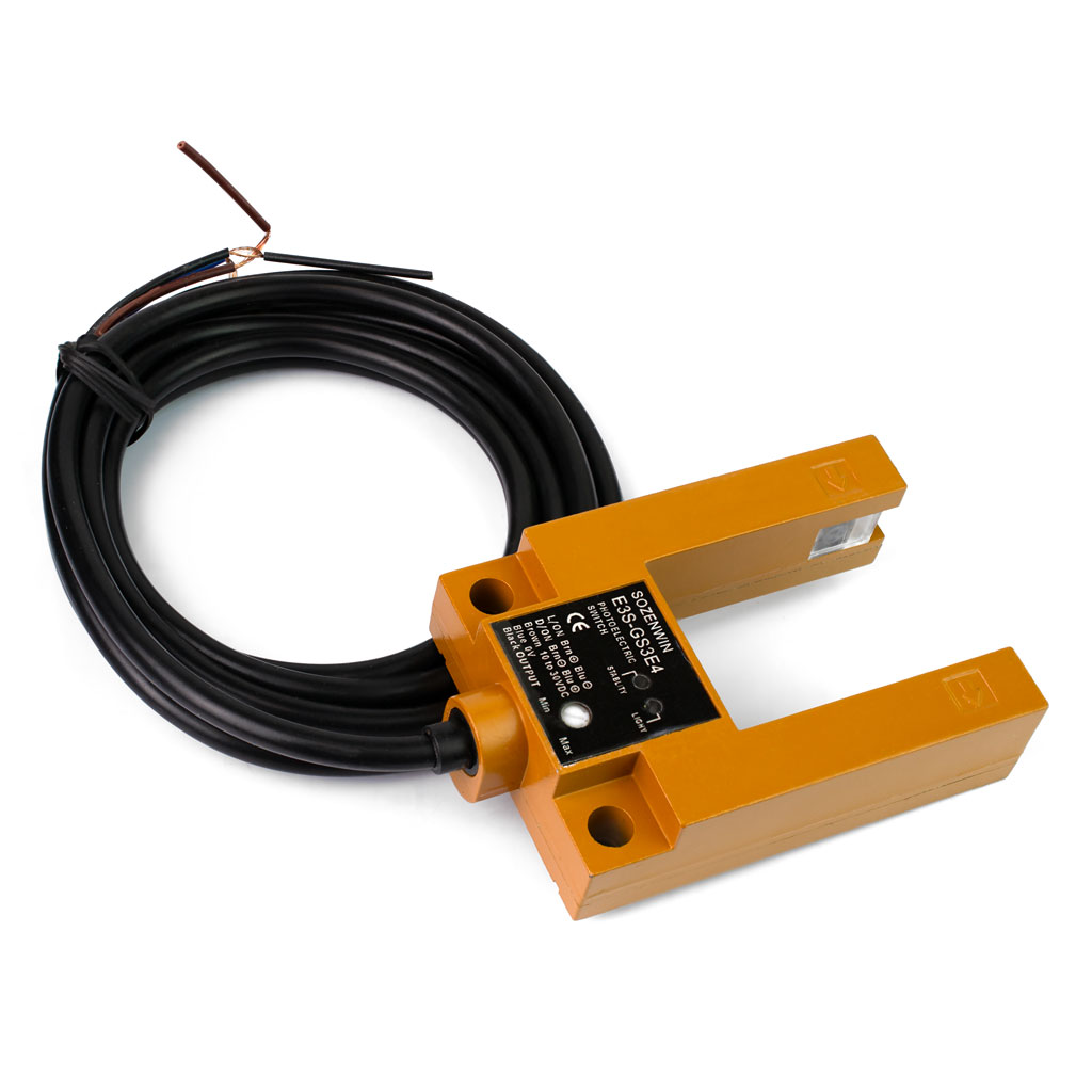 Датчик фотоэлектрический щелевой (вилочный) E3S-GS3E4 NPN — это специализированная модель датчика приближения с U-образной конструкцией корпуса. Принцип работы оптического вилочного датчика основан на прерывании объектами направленного светового луча между источником инфракрасного излучения и фотоприёмником, расположенных на концах "вилки". Датчик щелевой фотоэлектрический чувствителен к любым объектам, состоящим из материалов с крайне малым или нулевым коэффициентом светопроводимости. Наиболее частое применение фотоэлектрическим щелевым датчикам находится в промышленных и бытовых системах, взаимодействующих с динамически движущимися объектами: линейные системы перемещения, станки ЧПУ и 3Д-принтеры, системы обратной связи с измерением скорости вращения двигателя и так далее.