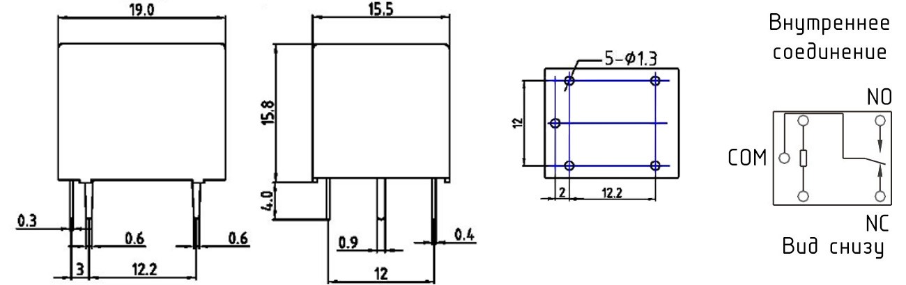 Физические размеры (мм), схема внутренней коммутации