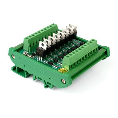 Плата усиления сигнала 8 канальная на оптронах, на DIN рейку, NPN управление 5В с пылезащитной крышкой.