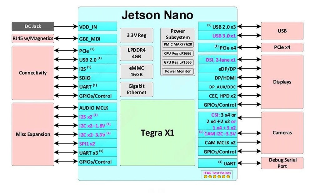 NVIDIA Jetson Nano™ Developer Kit позволяет разрабатывать миллионы инновационных компактных, энергоэффективных и доступных по стоимости устройств для любой сферы эксплуатации. Модуль Jetson Nano обладает вычислительной мощностью 472 Гигафлопса, обеспечивающую быструю работу множества современных алгоритмов искусственного интеллекта. Решение открывает новые возможности для встроенных IoT-приложений, в том числе для видеорегистраторов начального уровня, домашних роботов и интеллектуальных шлюзов с возможностями аналитики. C уровнем энергопотребления всего 5-10 Вт, обладает возможностью параллельной работы нескольких нейронных сетей с одновременной обработкой нескольких высокоточных датчиков. Размером 70 мм x 45 мм, модуль Jetson Nano является самым компактным устройством в линейке NVIDIA Jetson. Готовая система на модуле обеспечивает значительную производительность при развертывании искусственного интеллекта.