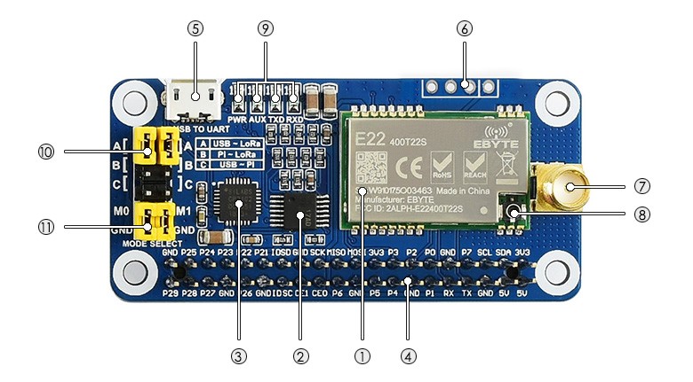 Плата расширения SX1262 868M LoRa HAT WaveShare для RaspberryPi