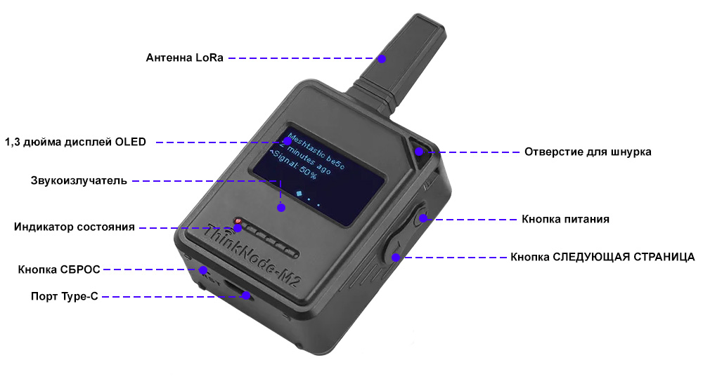ThinkNode-M2 OLED WiFi Elecrow Персональная радиостанция LoRa EU868 с поддержкой Meshtastic