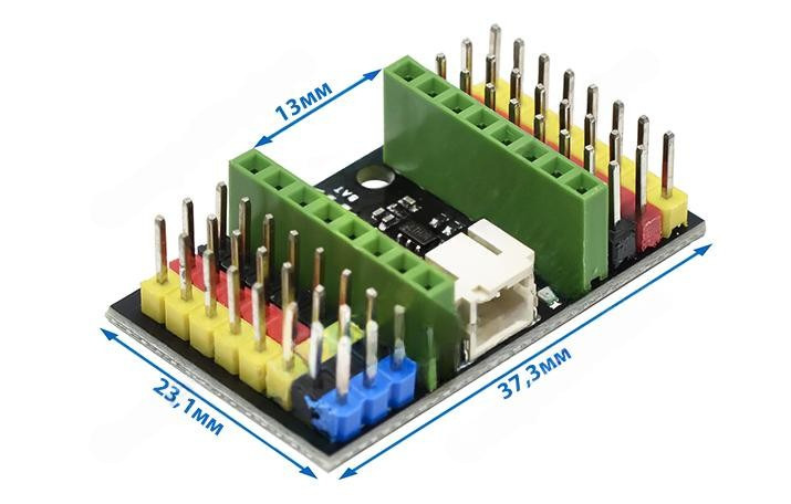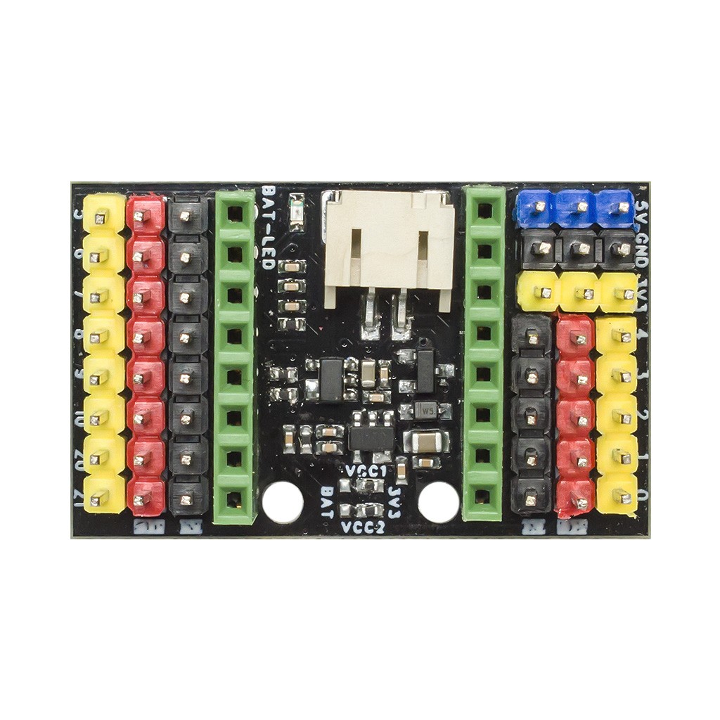 Из дополнительных опций все цифровые порты платы расширения ESP32-C3 целенаправленно скомпонованы с линиями напряжения питания в формате IO+VCC+GND, чтобы максимально упростить подключение цифровых датчиков и сенсоров. Коннекторы питания подключения датчиков/сенсоров расцвечены красным, для них на плате расширения ESP32-C3 Expansion Board предусмотрен выбор уровня выходного напряжения: от встроенного 3.3-вольтового регулятора или напрямую от литиевой батареи. Эти коннекторы разделены на две независимые группы и расположены 5 в группе VCC1 и 8 в группе VCC2. Коннекторы 5-вольтового напряжения на плате ESP32-C Expansion Board выделяются среди прочих окраской синего цвета.