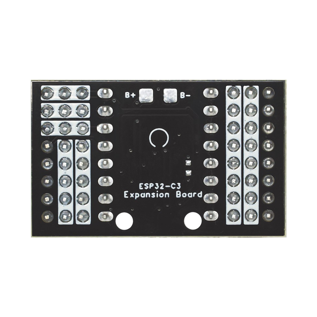 Плата расширения ESP32-C3 Expansion Board — специализированный модуль, предназначенный для использования вместе с платой разработчика ESP32-C3 SuperMini, и добавляющий ряд полезных улучшений. ESP32-C3 Expansion Board позволяет организовать функцию автономного питания контроллера ESP32-C3 от перезаряжаемой литиевой батареи, содержит в своей схеме батарейный разъём, микросхему контроллера заряда с выходным током до 1А и чип понижающего 3.3-вольтового DC/DC регулятора. Все 16 контактов присоединяемой платы ESP32-C3 SuperMini, использующиеся для ввода-вывода цифровых данных или подачи напряжения питания к чипу ESP32-C3, представлены на плате расширения ESP32-C3 Expansion Board в виде штыревых коннекторов беспаечного монтажа, повышающие удобство прототипирования EPS32-проекта.
