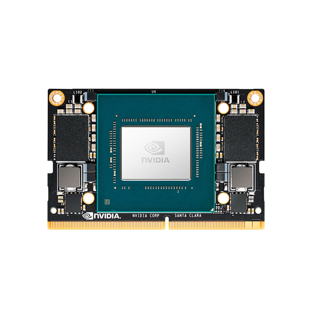 Флагманский модуль NVIDIA Xavier NX семейства Jetson выполнен в форм-факторе SO-DIMM на плате размером меньше стандартной банковской карты. Построенный на SoC-чипе NVIDIA Carmel ARM®v8.2 (система в одном кристалле) с интегрированными звуковой и графической подсистемами, модуль укомплектован твердотельными накопителями ОЗУ- и ПЗУ-памяти большого объёма. Общение с миром у Jetson Xavier NX предполагается через многочисленные выводы и контакты интерфейсных шин, среди которых присутствуют распространённые MIPI CSI-2, PCIe 3-го поколения, HDMI/DP 1.4, USB стандартов 2.0/3.1, микроконтроллерные SPI, I2C, I2S, UART, CAN, и другие. Аппаратные видеокодеки H.264 и H.265 умеют обрабатывать изображения высокой чёткости 4К в многопоточных режимах кодирования/декодирования.