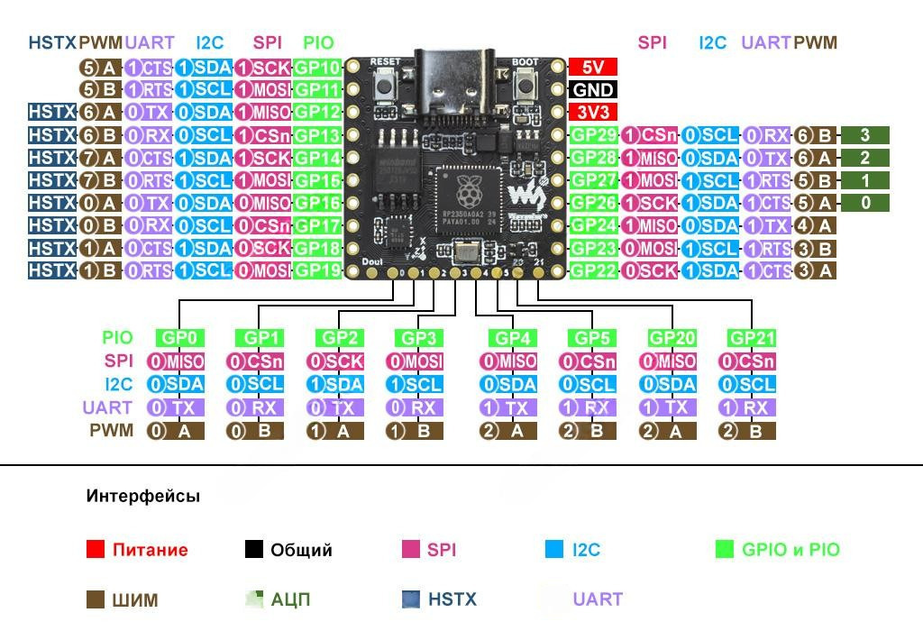 - Raspberry Pi оригинальные демонстрационные примеры на C/C++ для Pico2;