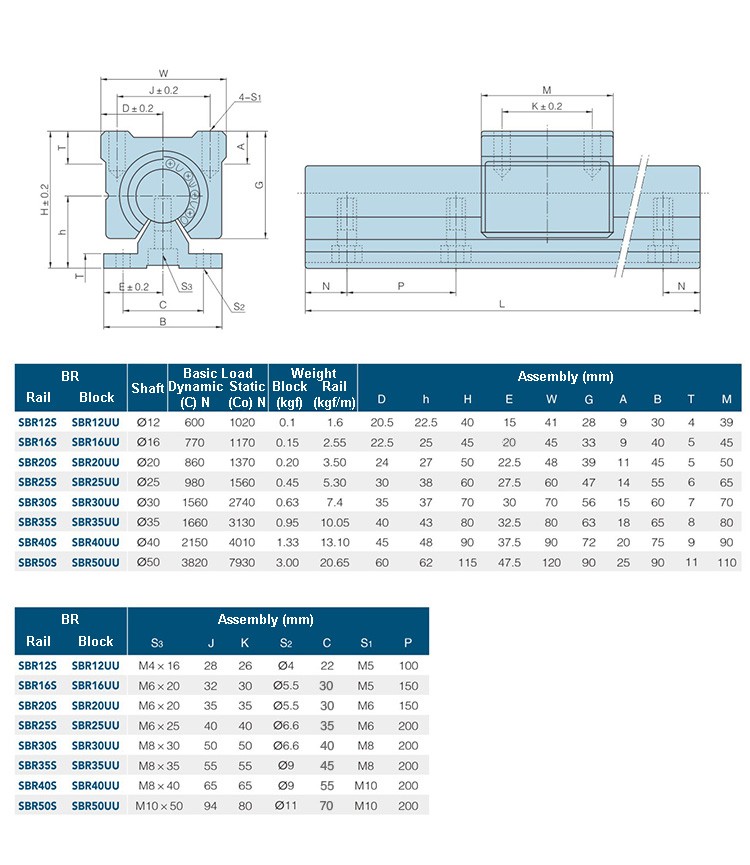 Система линейного перемещения 2 направляющих вала с опорой SBR12*600мм + 4 каретки SBR12UU