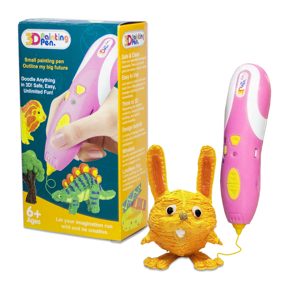 Эта волшебная 3D ручка предназначена для пользователей старше 6 лет. Она позволяет рисовать различные трёхмерные предметы из специального низкотемпературного пластика PCL с толщиной нити 1.75мм, изготавливающегося из экологически чистых и не токсичных компонентов. Температура плавления для PCL-пластика находится в пределах 60-110°C, поэтому ручка Cartoon 3D Painting Pen D0757A для объёмного рисования максимально безопасна, так как исключается возможность получения ребёнком серьёзных ожогов. Кроме моделирования плоских или объёмных поделок, с помощью 3Д ручки Cartoon Pen можно заниматься увлекательным декорированием других предметов или мелким ремонтом домашних пластиковых изделий (условно может заменить клеевой пистолет).