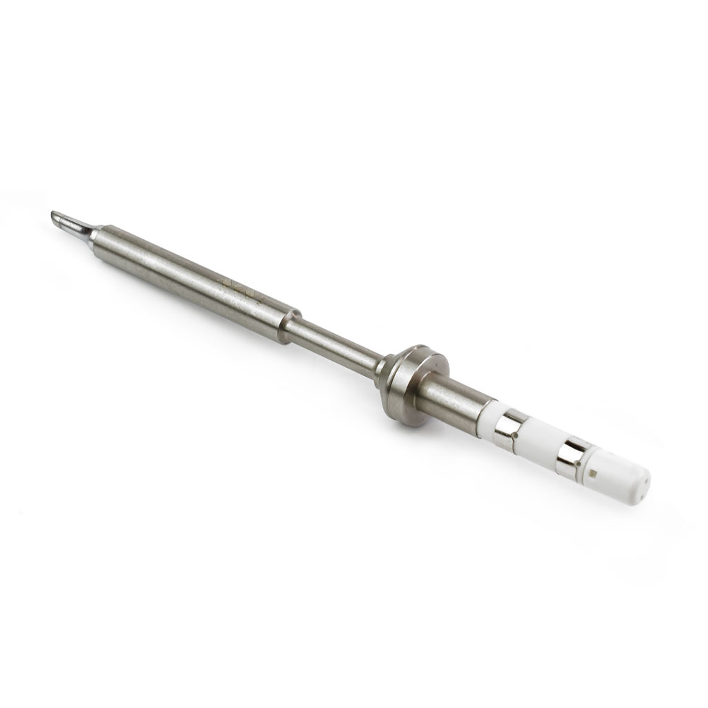 Оригинальное универсальное жало в виде конуса с односторонней заточкой под угол 45°. Контактная площадка малой формы. Обладает большим сроком службы и повышенной выносливостью. Имеет встроенный керамический нагреватель.